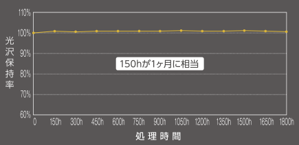 約1年相当(1800時間)の試験後も光沢劣化がほぼ見られず、